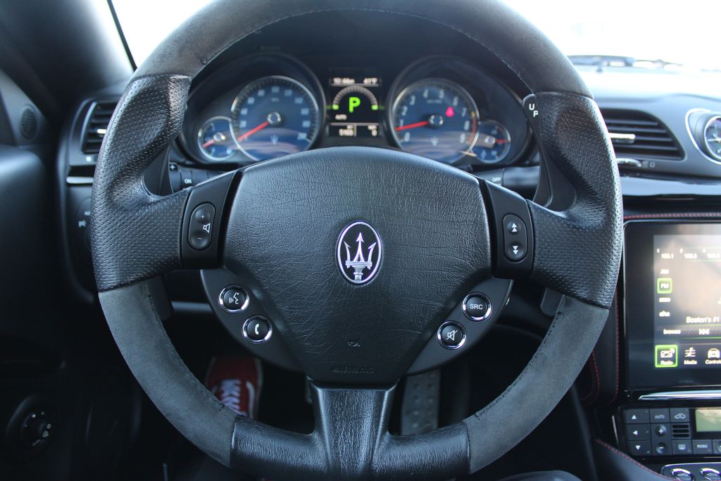Incredible one owner, low mileage GranTurismo with Alcantara Package adding Alcantara tunnel gear pod, center dash area, armrests, door panels, cluster, leather seat trim with Alcantara inserts, 4.7L 454hp engine, 20" Trident design silver alloy wheels, color soft top,adaptive suspension dampers, adaptive xenon headlights, power-folding and heated auto dimming mirrors, and front and rear parking sensors, dual zone climate control, rearview camera, Bluetooth, navigation, Android Auto and Apple CarPlay, satellite radio, Harman Kardon sound and more. Clean CARFAX. Call to confirm availability. Easy financing available.